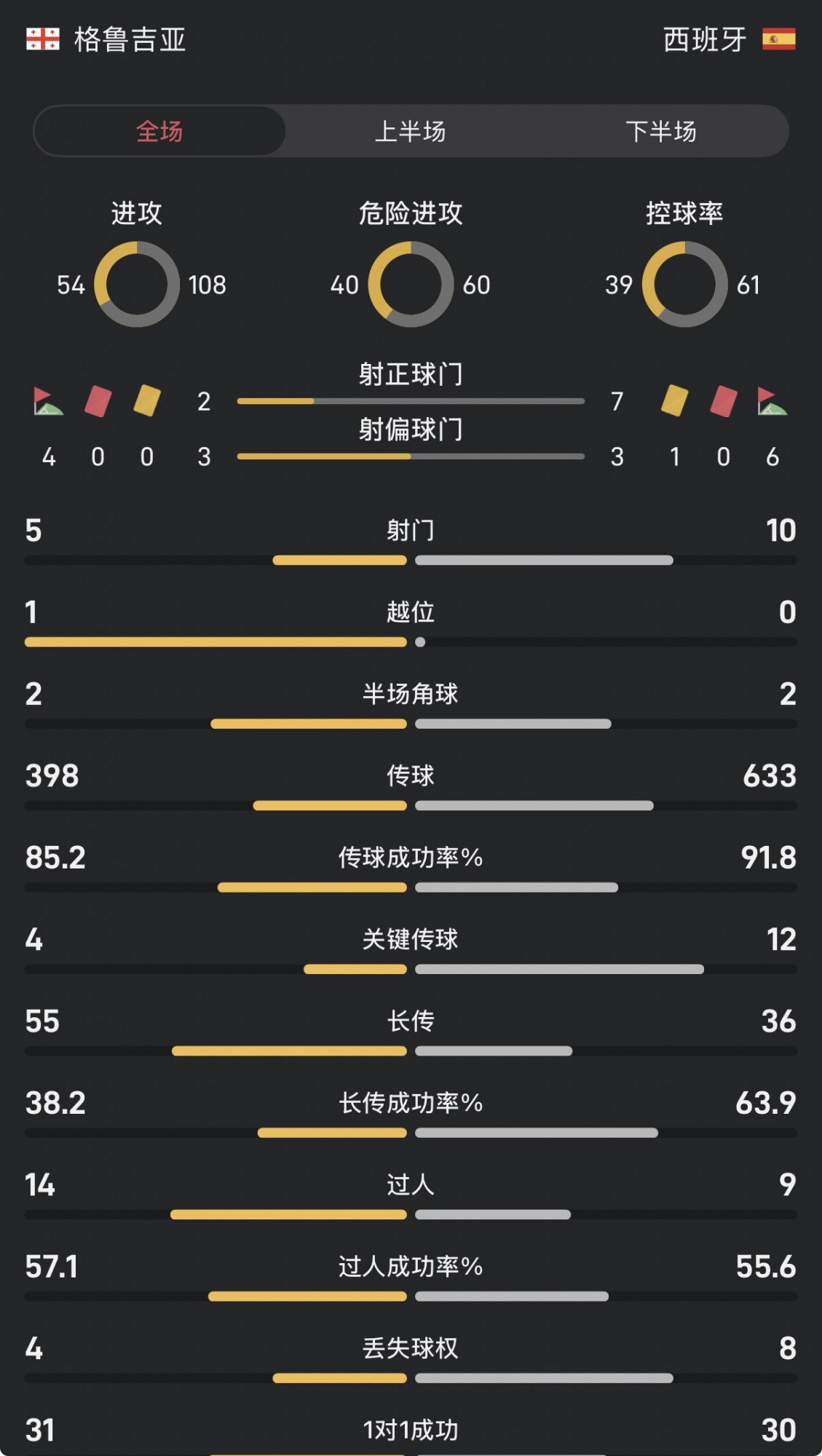 格鲁吉亚vs西班牙全场数据