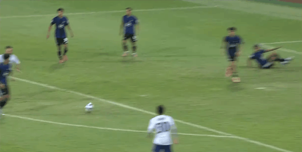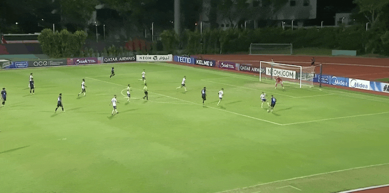 36’敲山震虎!曼谷联获得自由球机会,乍卡攀主罚攻门被挡出端线