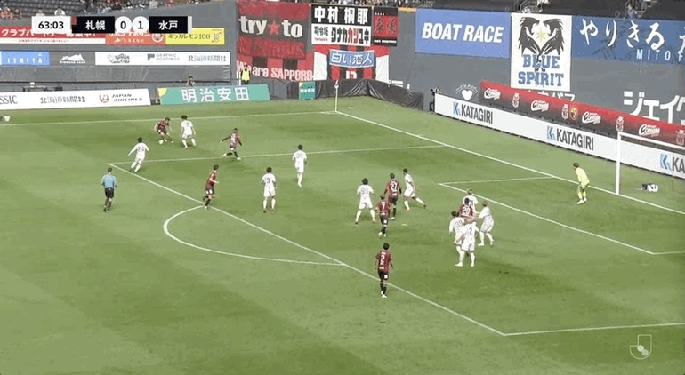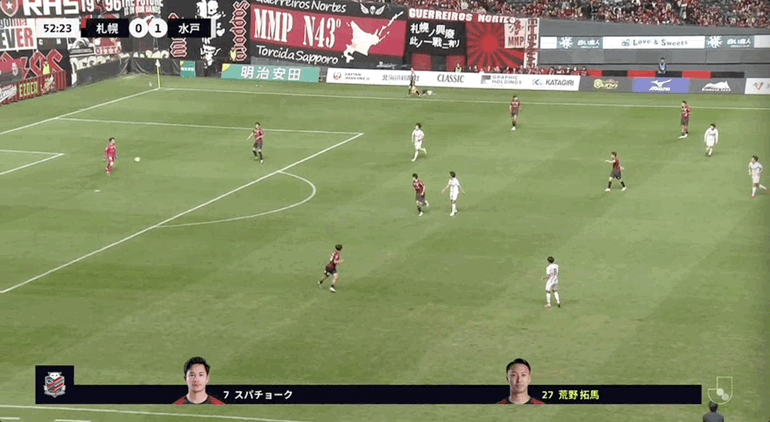 53’札幌一球跟跑位,仍耐心后场传倒