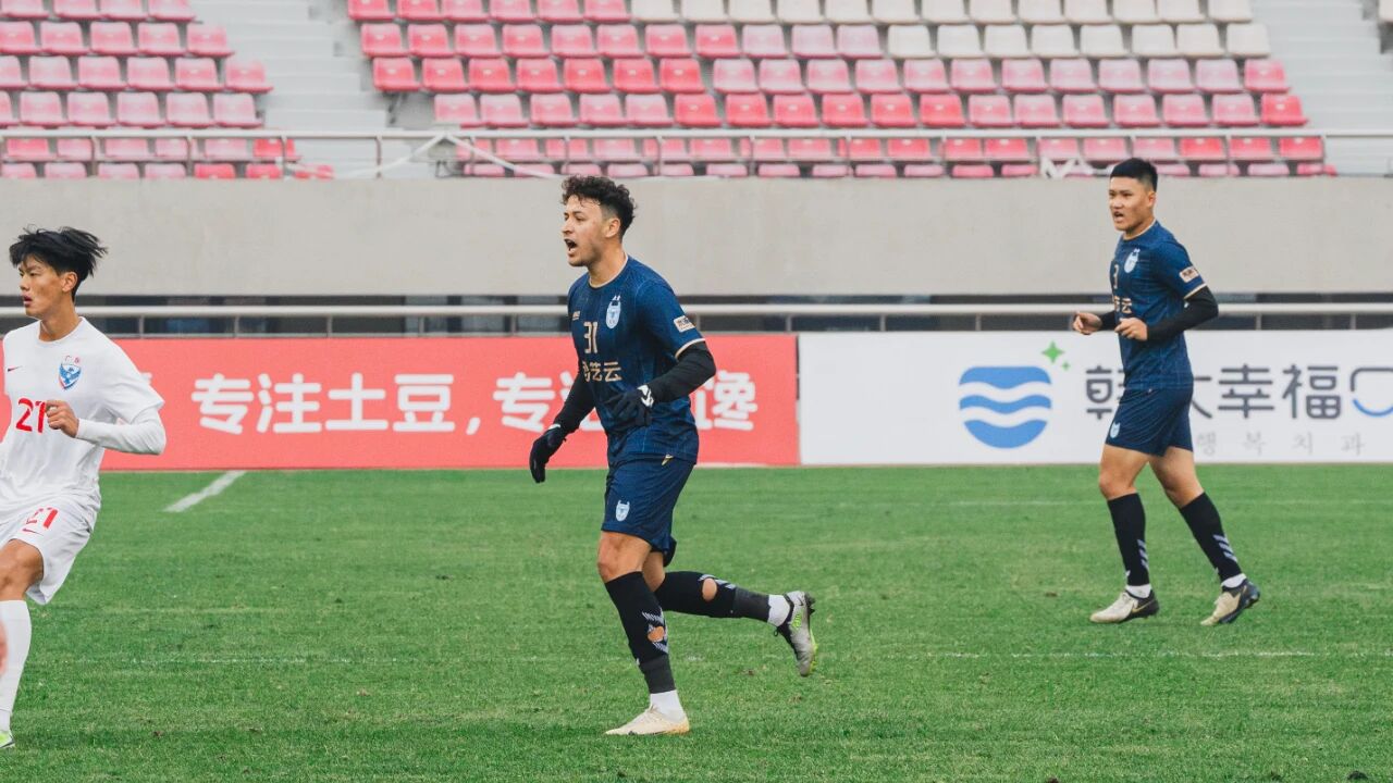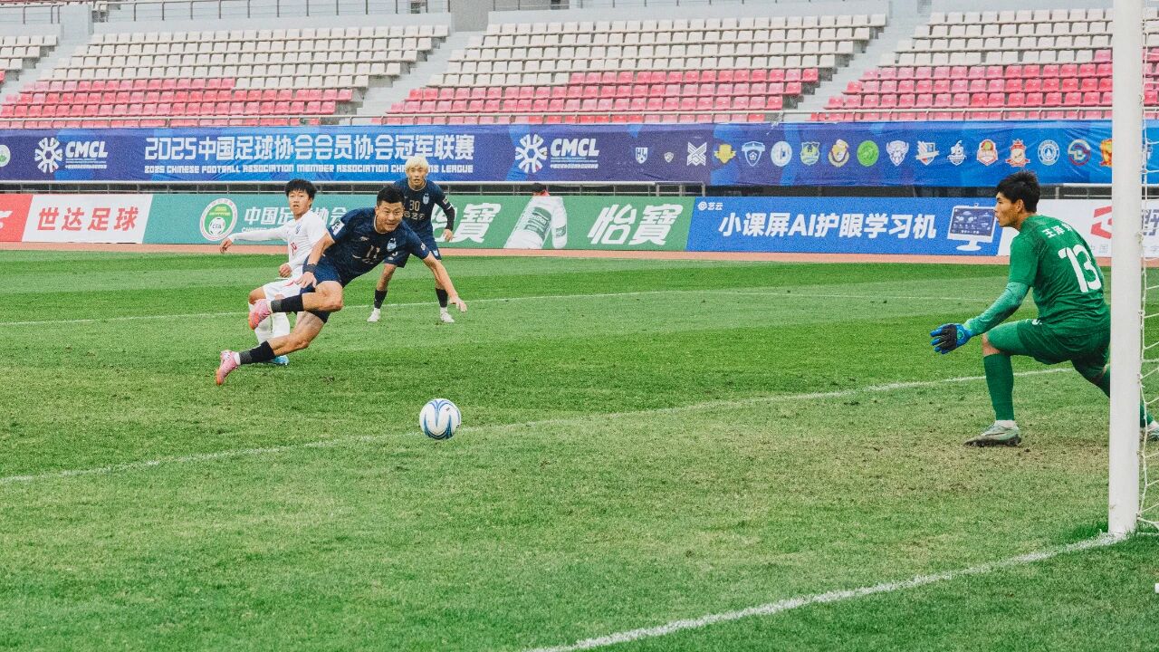 34分钟,于泽源突破至端线附近倒三角传接,张达驰跟进将球打进!1-1!