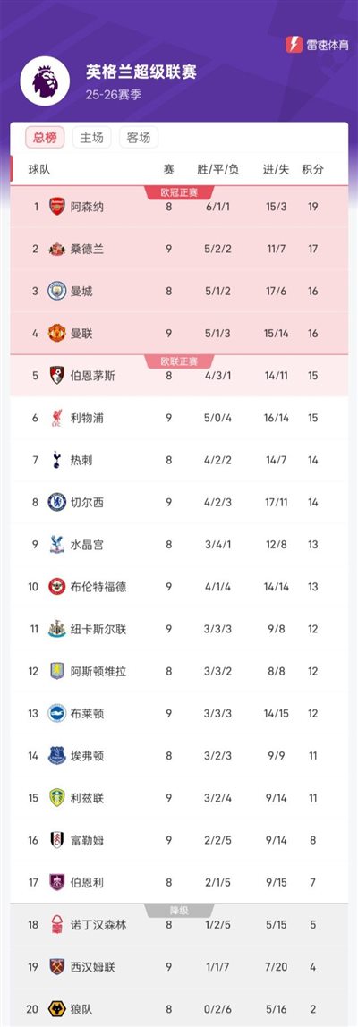 6686体育10月26日讯 截至北京时间今日凌晨,25/26赛季英超联赛事第9抡终结了5场竞赛的争夺,球队的积分排名也相应出现了变化。
