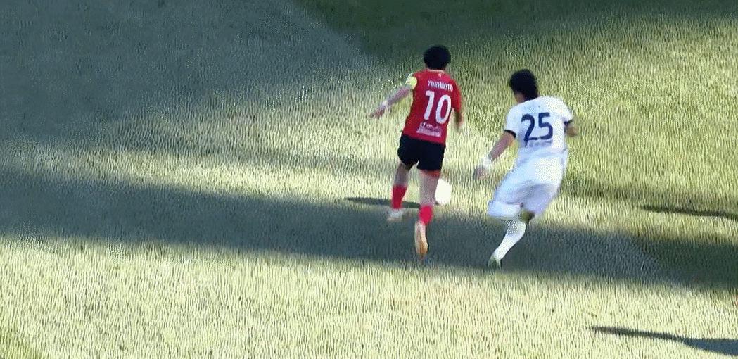 8’邦本宜裕三秒区外带球摆脱守卫起左脚外围射门,李冠希将球挡出