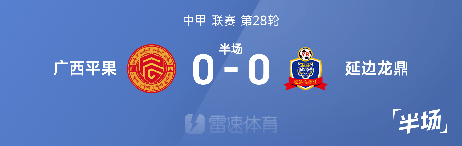6686体育10月26日讯 25赛季中甲联赛事第28轮,广西平果迎战延边龙鼎。半场战罢,双方赛果分暂为广西平果0-0延边龙鼎。