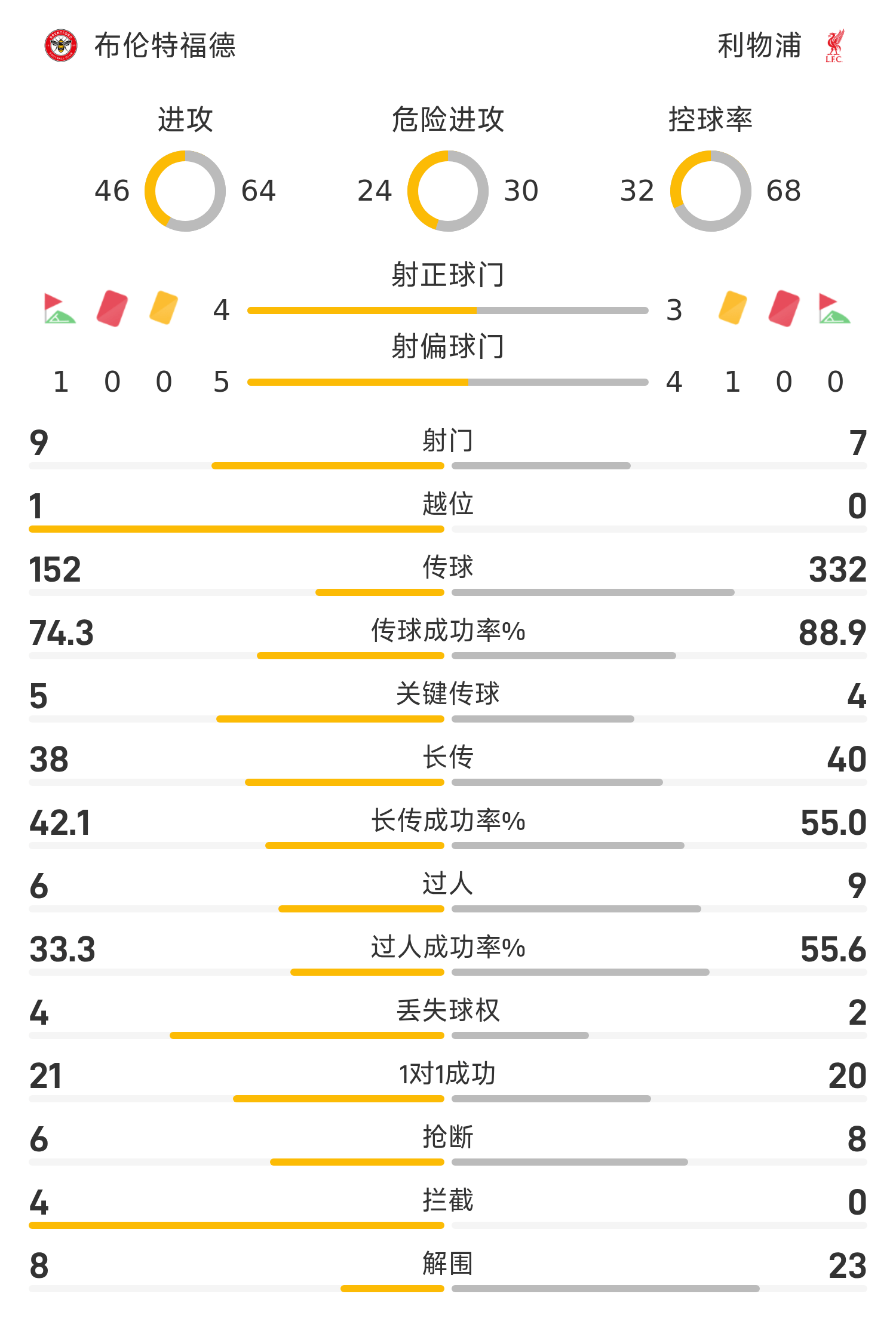 45+5’ 凯尔凯兹门前抢点得手,利物浦1-2布伦特福德