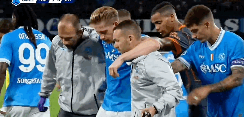 意甲半场:德布劳内点射后伤退,那不勒斯1-0国米