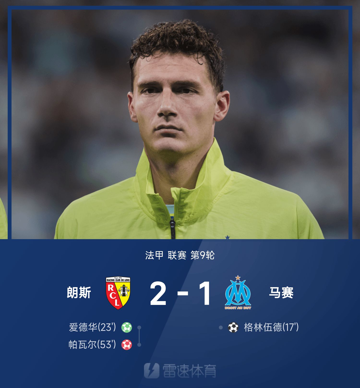 法甲战报:帕瓦尔送点+乌龙,青木破门难救主,马赛1-2朗斯