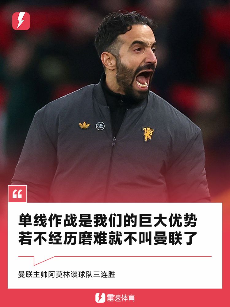 3连胜!阿莫林:单线作战是巨大优势,不经历磨难就不叫曼联