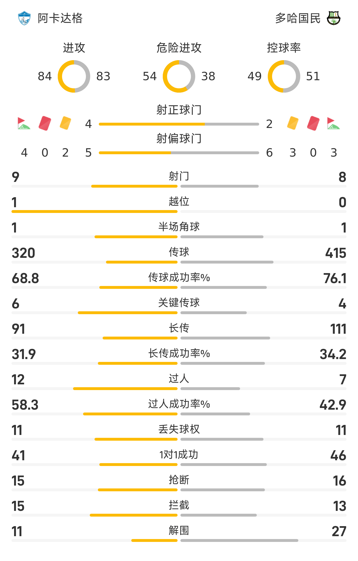 23’弗拉普小角度抽射破门,多哈国民暂1-0领跑位阿卡达格