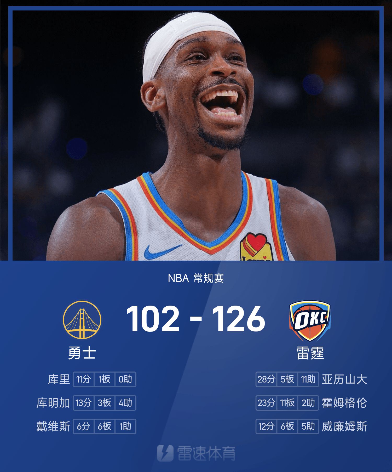 亚历山大稳定贡献28分11助攻,三节打卡送勇士一场大败!