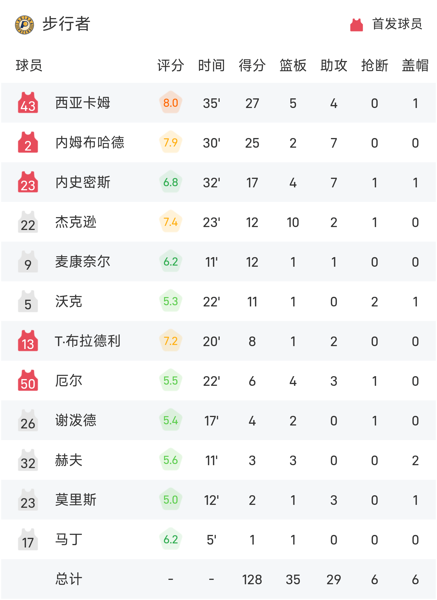 双方全场战罢,爵士152-128战胜步行者。