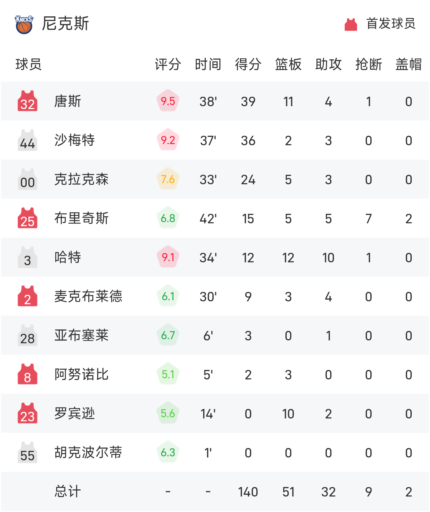 NBA杯战报:唐斯39分11板,尼克斯140-132击败热火