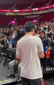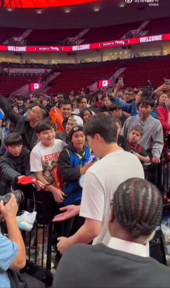 人气爆棚!大批球迷在通道等待杨瀚森,他将篮球鞋送给小球迷